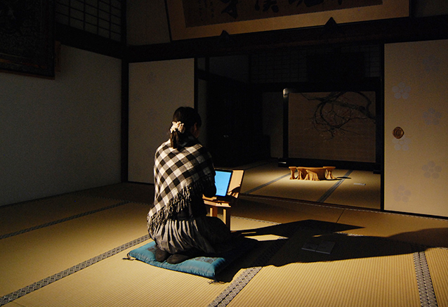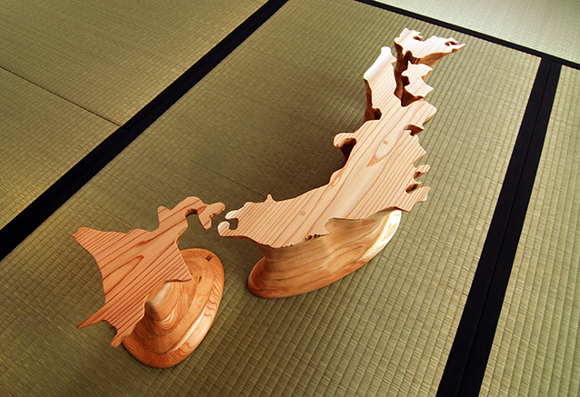 この日本列島の形で立ち上がるエネルギーを形象化したこの列島はしかし、その全体像をどこからも見ることはできない。この塊を床に置き、取り囲むように座って欲しい。