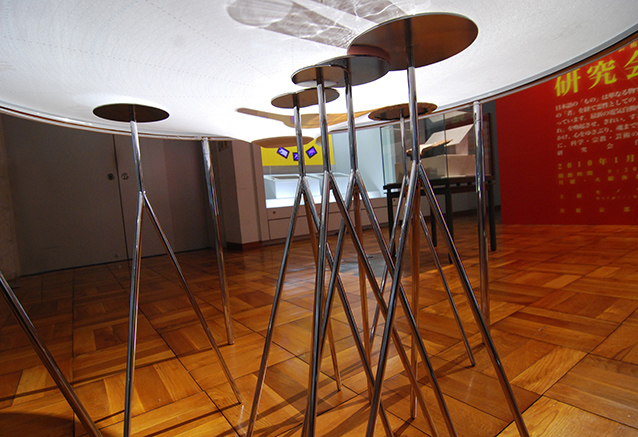表面の膜には浮かせるようにものを置くことができ、膜の背後に隠れて暗礁のように存在する惑星テーブルはそこだけ水平にものを載せることができる。これは背後の感覚の体現を目指したテーブルである。モノ学・感覚価値研究会アート分科会主催の展覧会「物からモノへ」展出品作品。