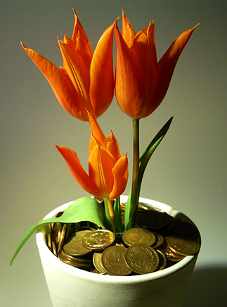 みんなで貯めてみんなで使う貯金箱。資産の使用目的は、花を買うこと。すなわち花基金である。 貯金箱自体が植木鉢の形をしていながら、花器として機能する。花が枯れたら、土の部分に貯蓄された基金で花を買う。土色の10円玉はいつでも花を咲かせるための土壌のような役割を果たす。