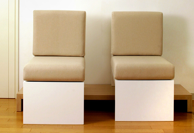 ヨハネスのイス グリム童話に忠臣ヨハネスという話がある。ヨハネスは、不思議な力を持ち 異界と現界という2つのレベルの違う地平を往復できる存在である。それは この椅子のように後ろ足は台の上に前は床の上に下ろしている状態かもし れない。