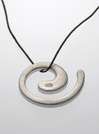 蝸牛から銀河まで渦巻というフォルムは自然界によくみられる形である。渦巻は、古代より装飾に好んで使われる文様であるが、それはまた機能的なフォルムでもある。これは、蚊取り線香を原型にしたペンダントである。