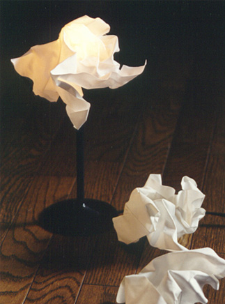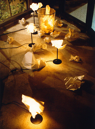 紙屑が捨てられているように見えるが、それぞれを電球に取り付ければランプシェードになる。ものは捨てられた瞬間意識から遠ざかる。それゆえ暗いあかりが似合う。