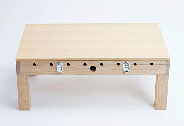 平日の文机が、休日はサッカーゲームに変身する。遊びのワクワク感を抱え込んだ勉強机。
