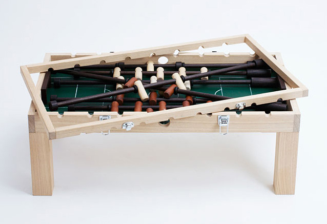 テーブルサッカーは、あまり家に似合うものがない。球の当たる音も心地よく、手になじむ木製とし、家具のようなクオリティを目指した。